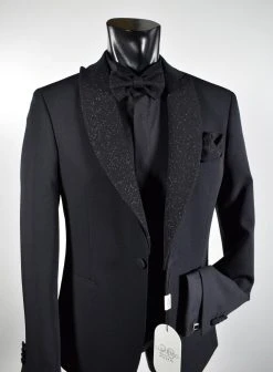 Musani Uomo Wedding 2.0 Smoking Nero Slim Fit Musani Con Petto A Lancia Brillantinato