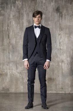 Musani Wedding Smoking Blu Micro Disegno Con Panciotto Slim Fit Musani Cerimonia