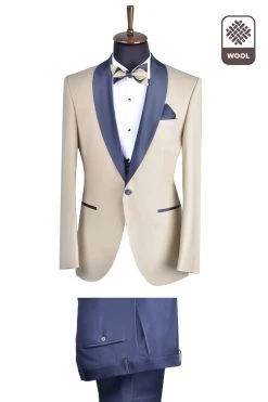 Baggi Men Smoking Beige Baggi Cerimonia Slim Fit Completo Di Panciotto E Papillon