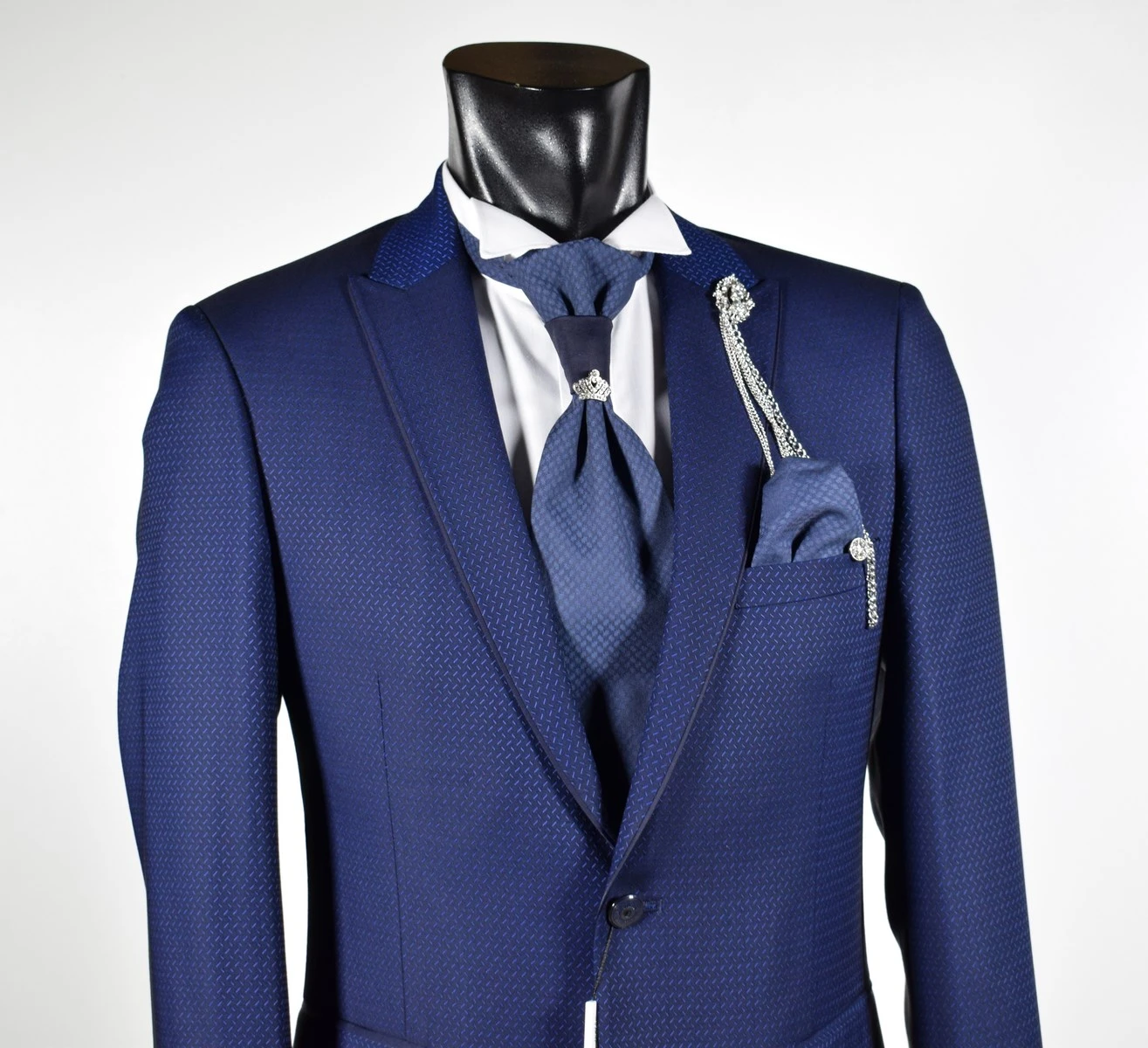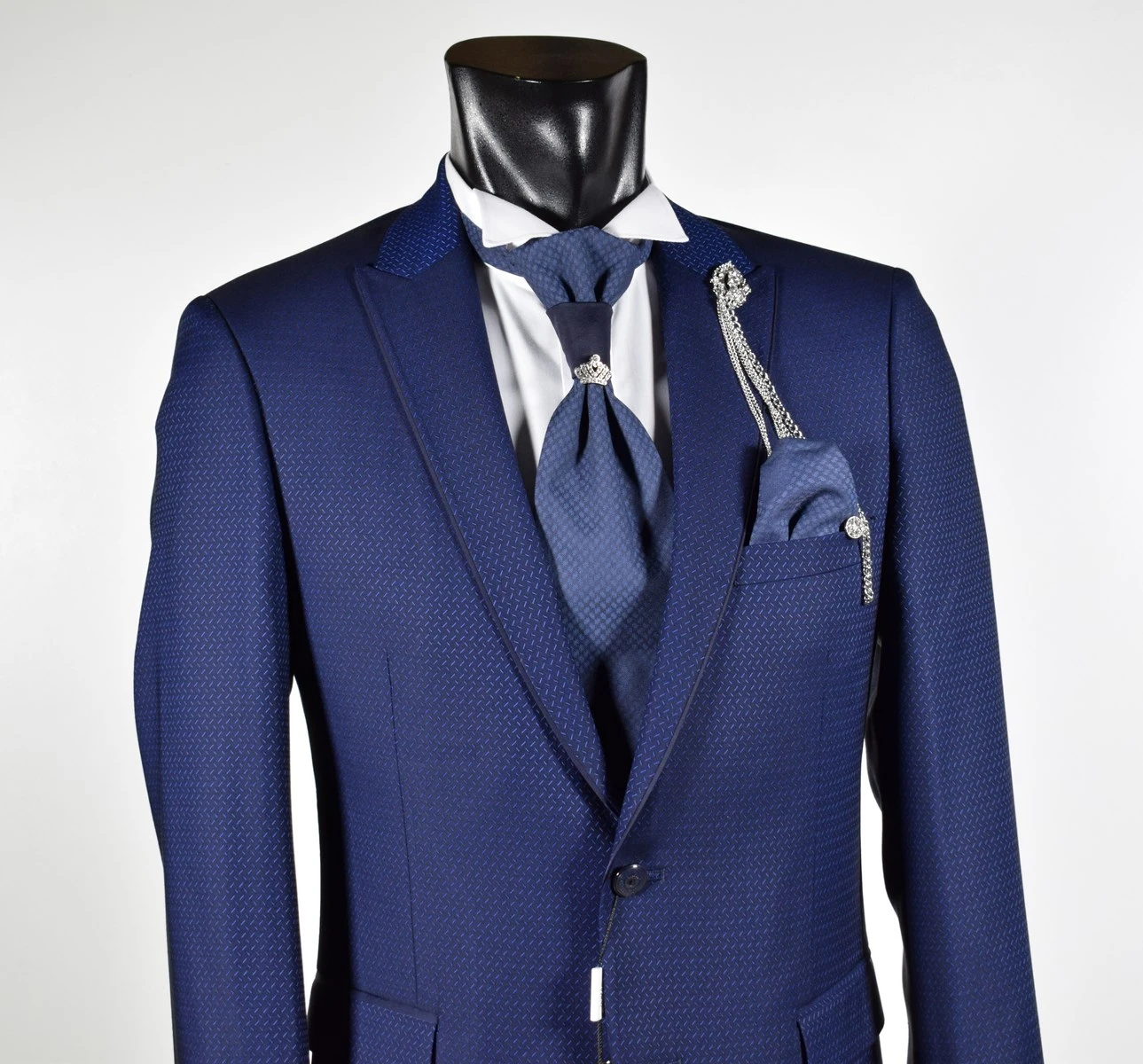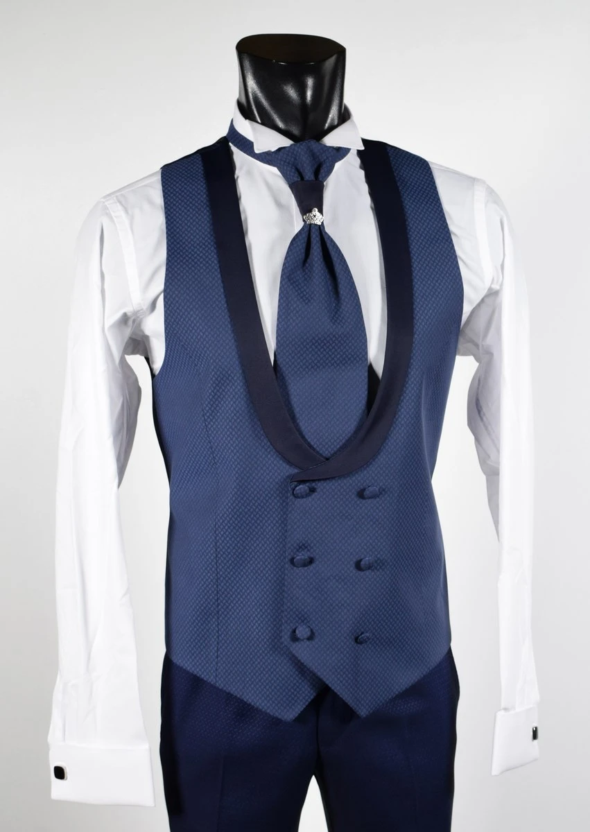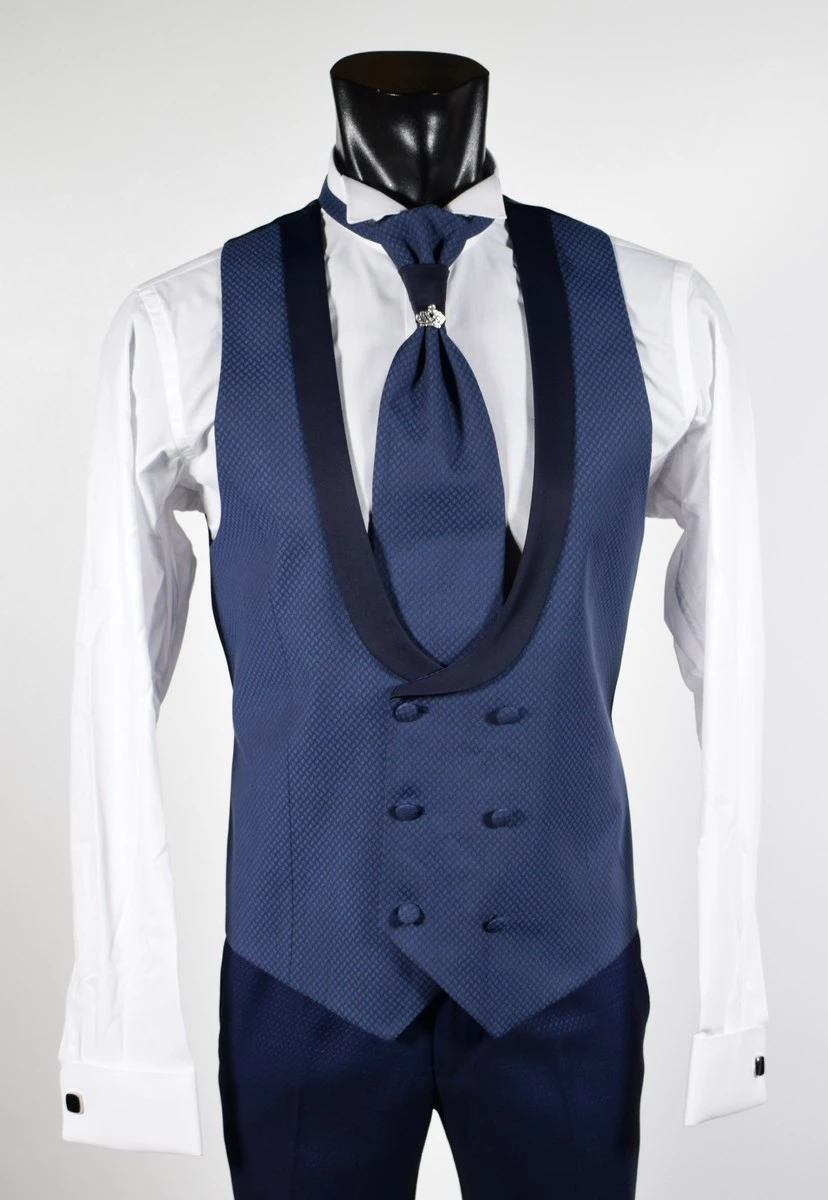 Musani Uomo Abito Blu Damascato Musani Cerimonia Sposo Slim Fit