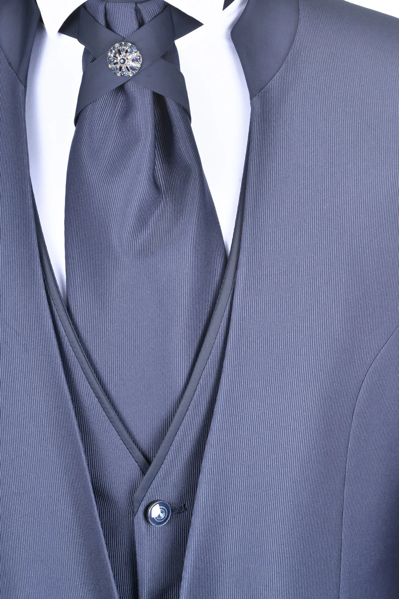 Musani Uomo Abito Blu Damascato Musani Cerimonia Sposo Slim Fit