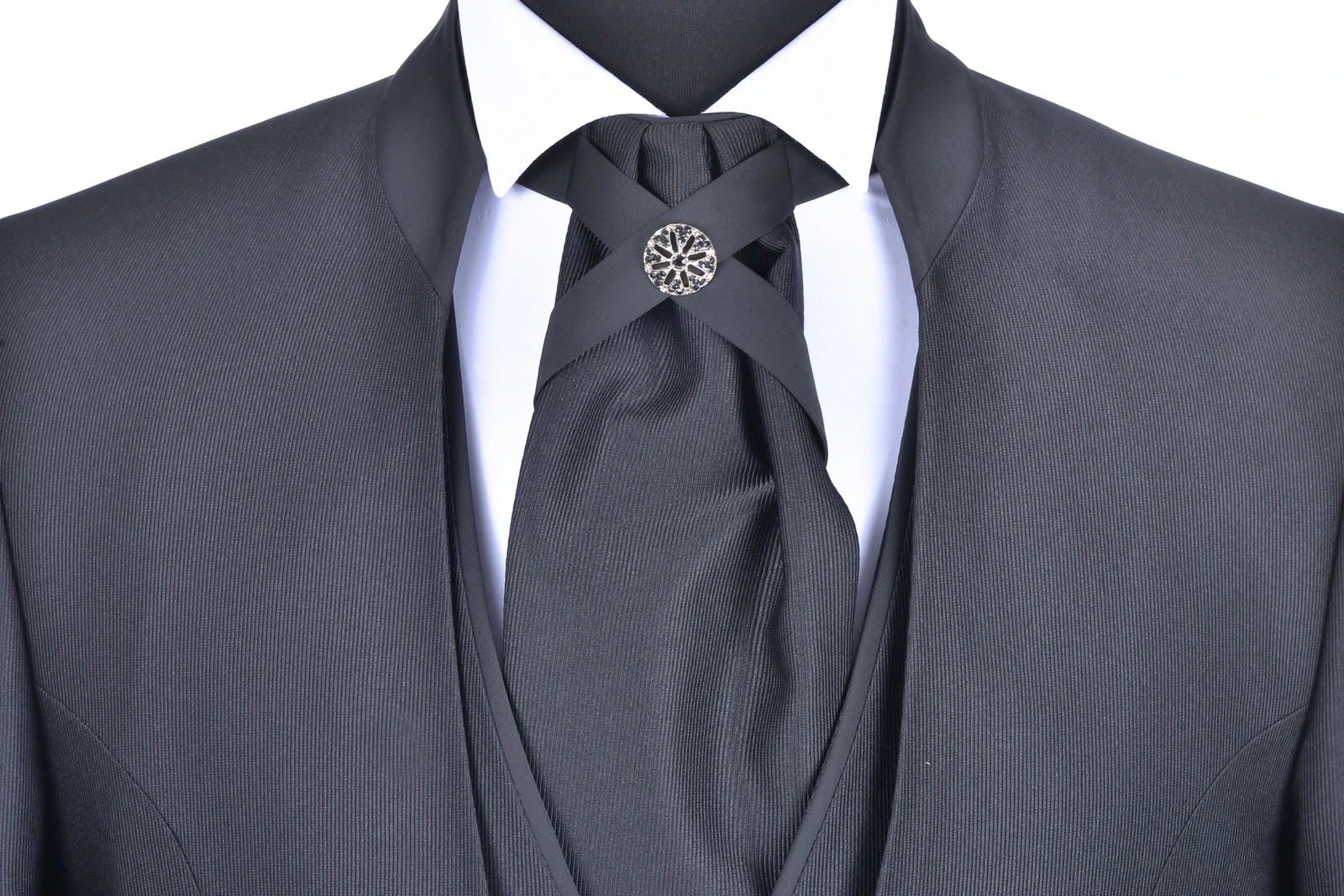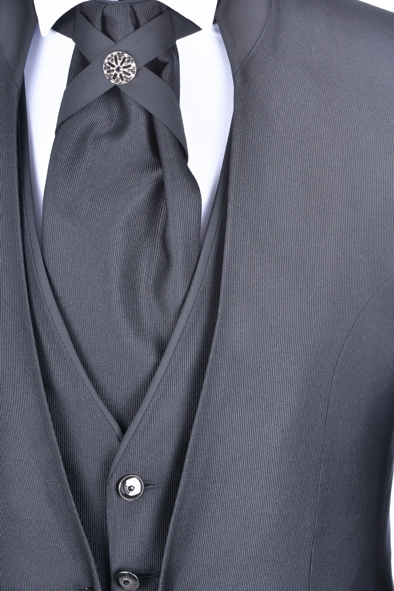 Musani Uomo Abito Elegante Nero Musani Cerimonia Slim Fit Con Panciotto