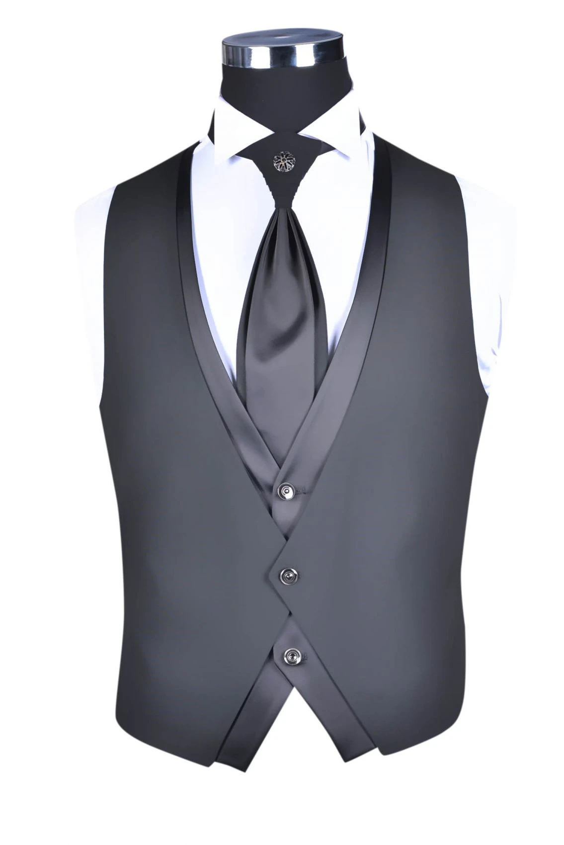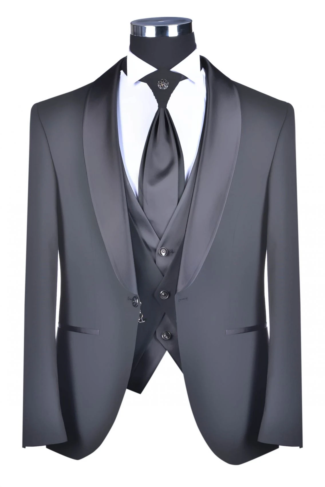 Abito Grigio Lucido Luciano Soprani Cerimonia Slim Fit Con Panciotto
