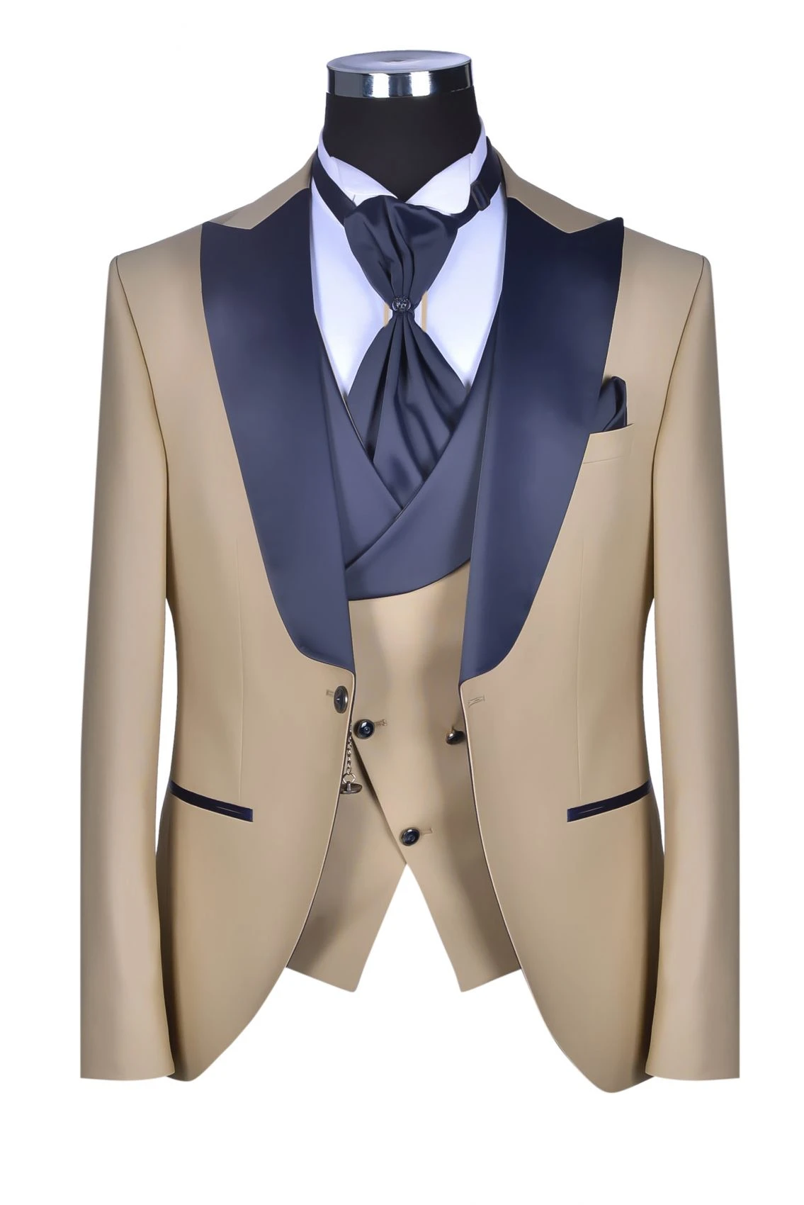 Musani Uomo Abito Blu Damascato Musani Cerimonia Sposo Slim Fit