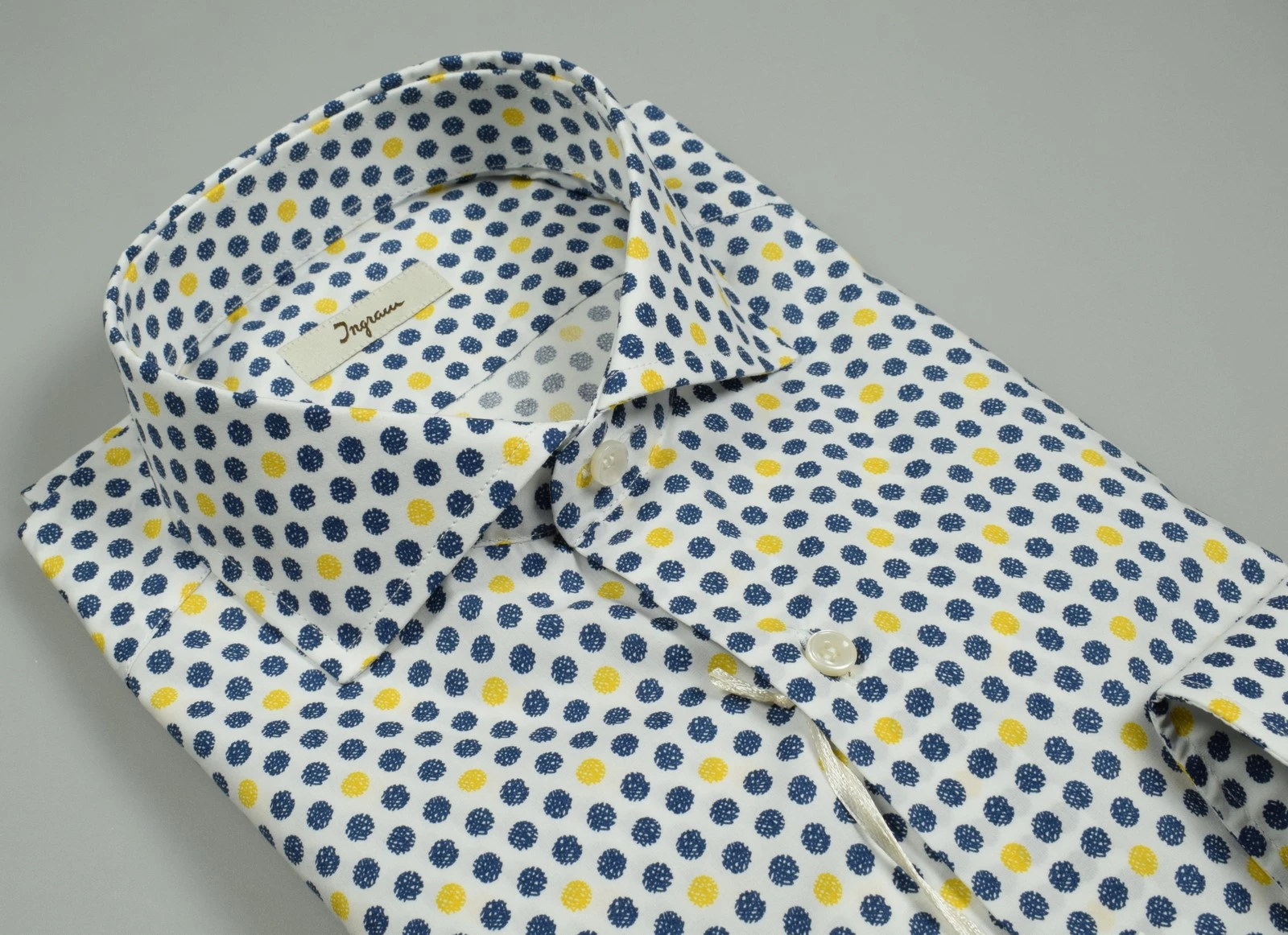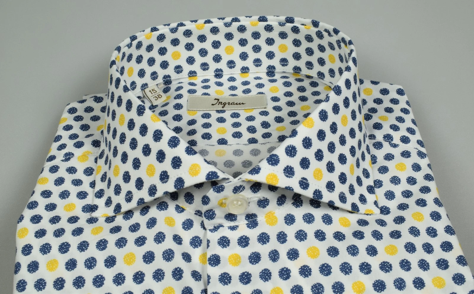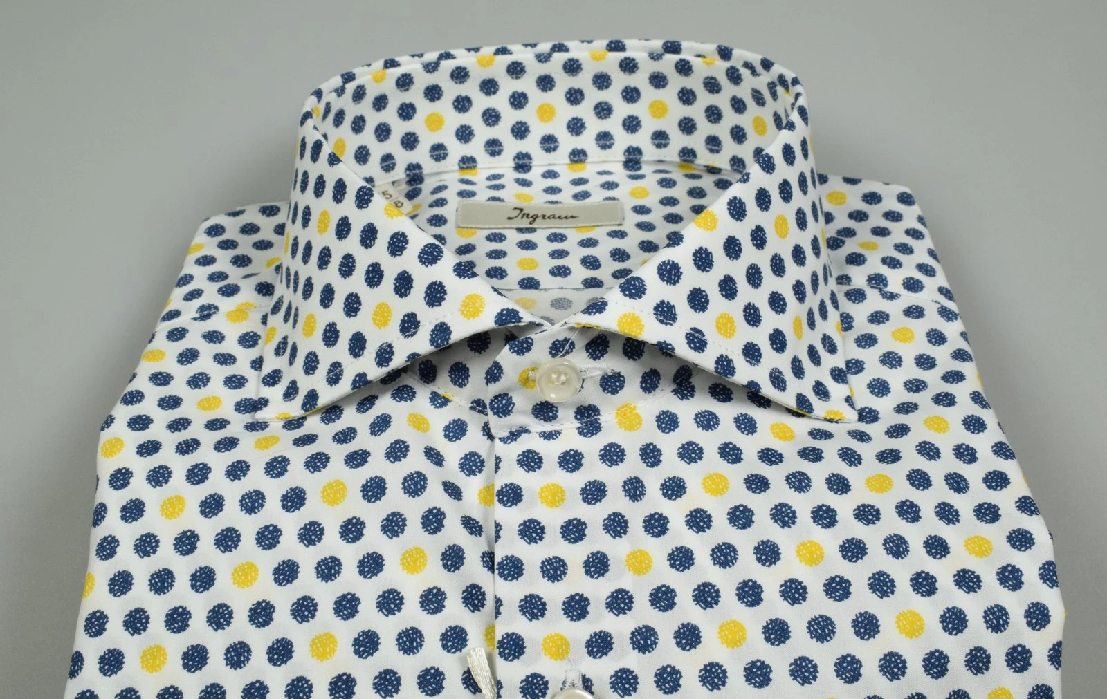 Camicia Button Down Ingram Blu Puro Cotone Disegno Piccolo Stampato