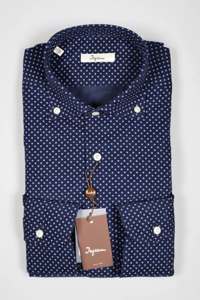 Camicia Button Down Ingram Blu Puro Cotone Disegno Piccolo Stampato