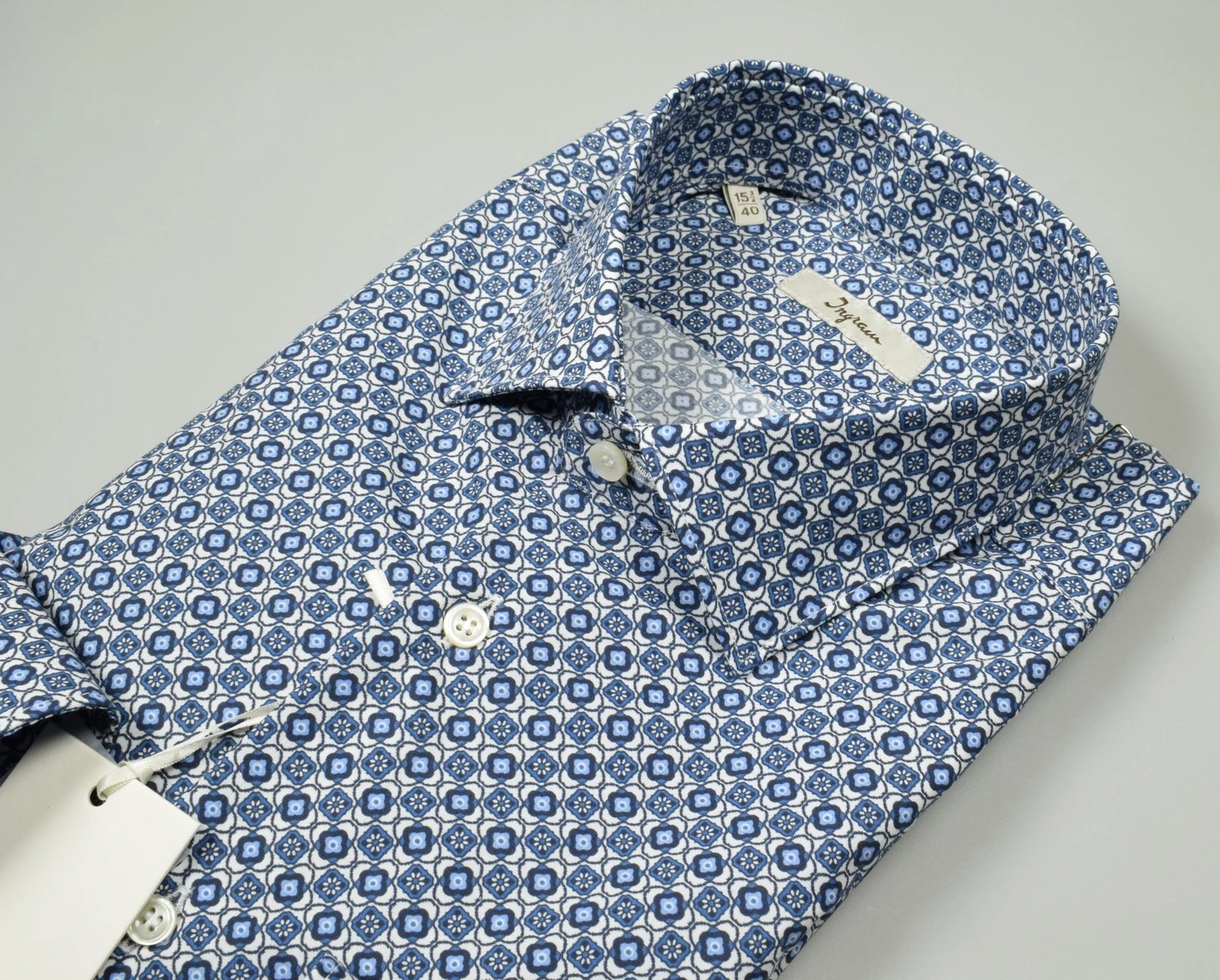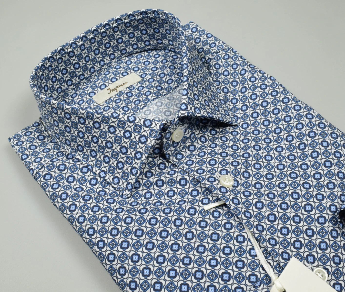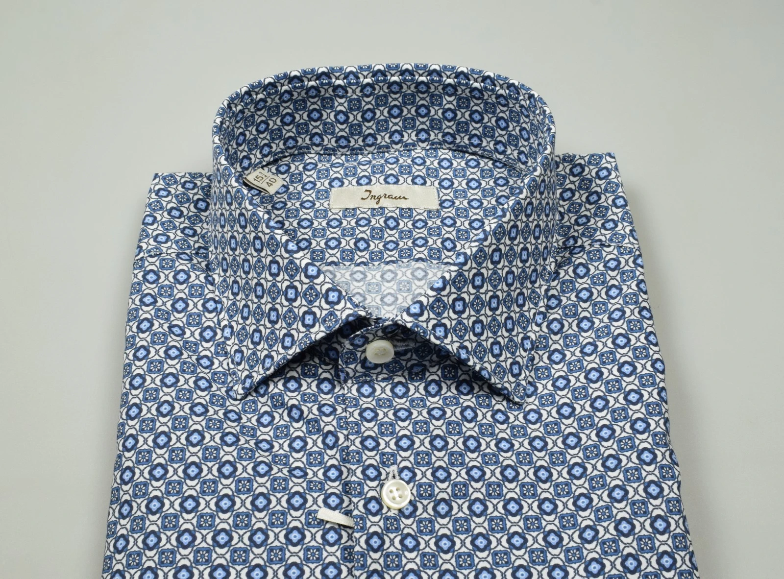 Camicia Button Down Ingram Blu Puro Cotone Disegno Piccolo Stampato