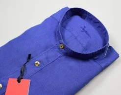 Camicia Ingram Azzurro Scuro In Puro Lino Regular Fit Collo Alla Coreana