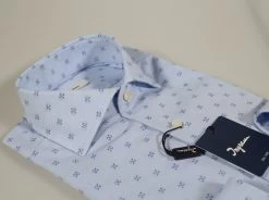 Camicia Ingram Bianca Disegno Stampato Blu Slim Fit Collo Alla Francese