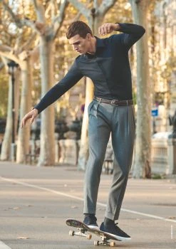OLYMP No. Six Camicia Olymp In Jersey Blu Scuro Super Slim Fit