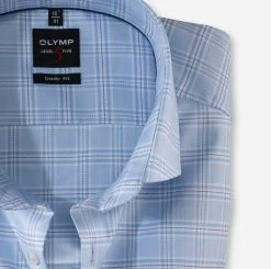 OLYMP Level Five Camicia Celeste A Quadri Olymp Slim Fit Cotone Twill Stretch