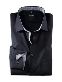 OLYMP Luxor Camicia Nera Olymp Modern Fit Cotone Organico Facile Stiro