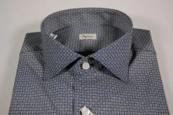 Camicia Ingram Slim Fit Collo Francese Blu Micro Disegno Azzurro