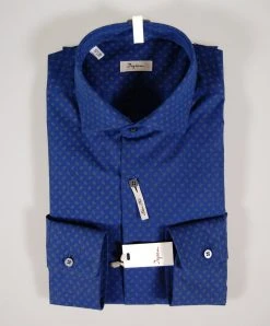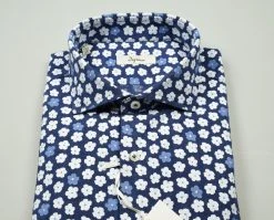 Camicia Ingram Slim Fit Blu Fantasia Stampata In Puro Cotone