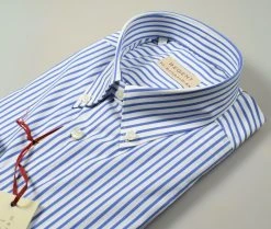 Regent By Pancaldi Camicia Regular Fit Pancaldi A Righe Azzurro Cotone Stretch