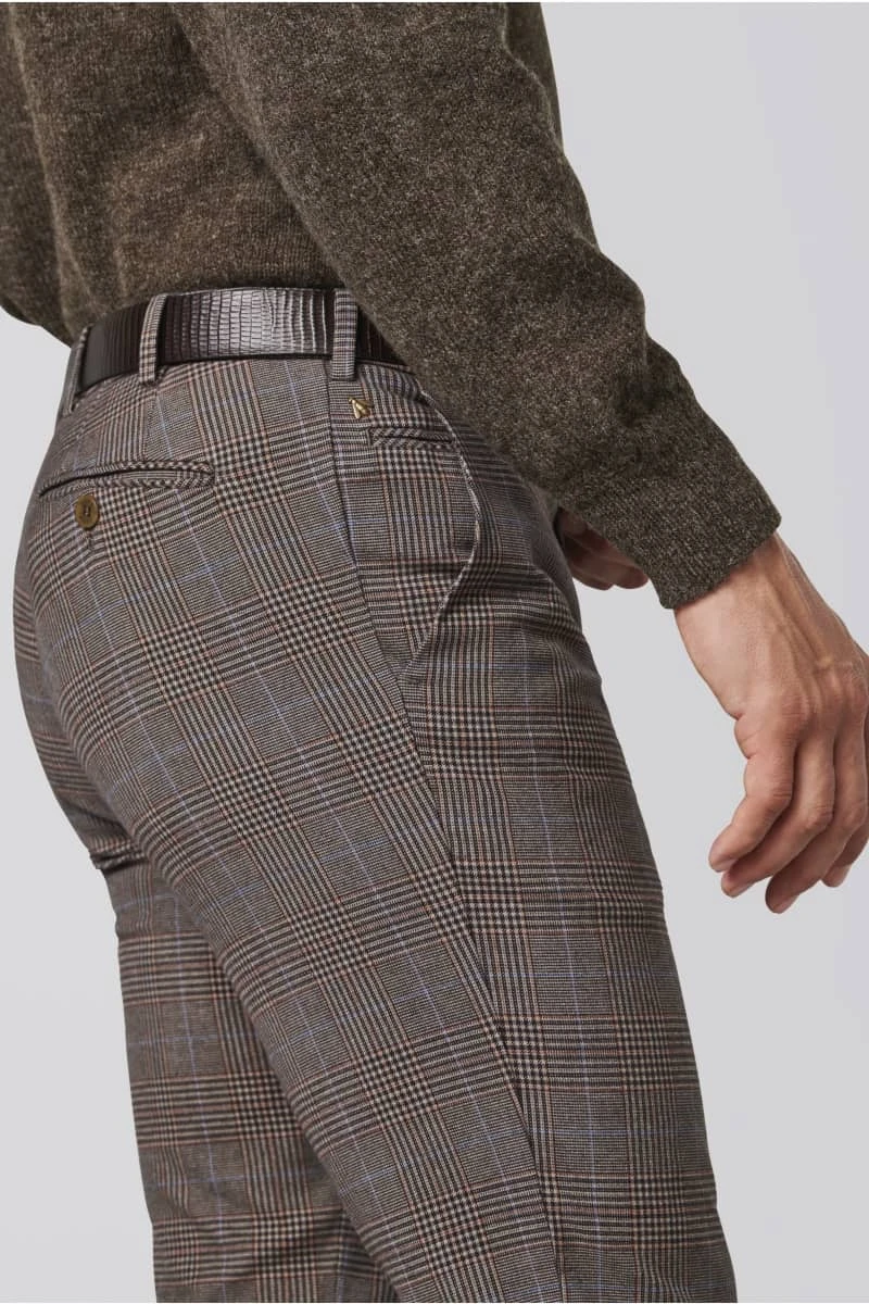 MEYER Exclusive Pantalone Modern Fit Blu Fantasia Principe Di Galles Meyer
