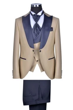 Baggi Men Smoking Con Petto A Lancia Beige Baggi Slim Fit Con Gilet E Plastron