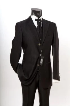 Abito Nero Gessato Luciano Soprani Cerimonia Slim Fit Completo Di Panciotto E Cravatta