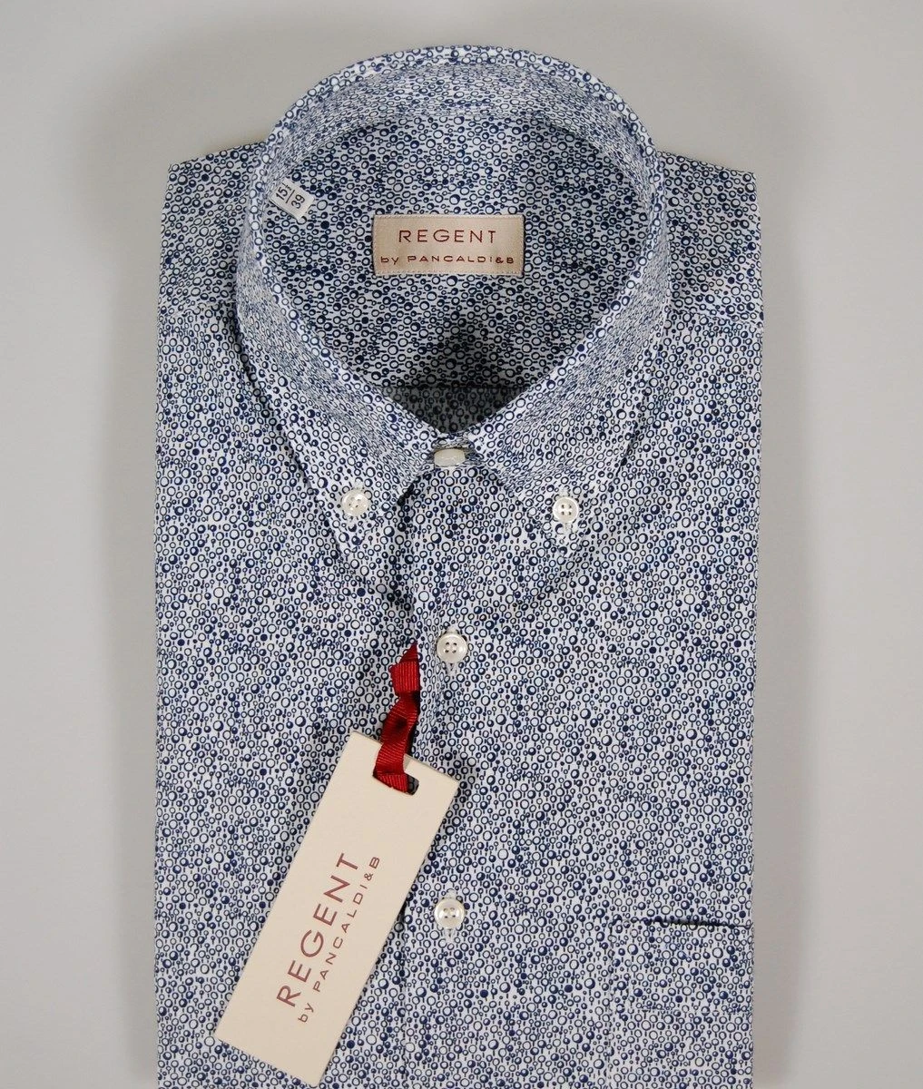Camicia Button Down Ingram Blu Puro Cotone Disegno Piccolo Stampato