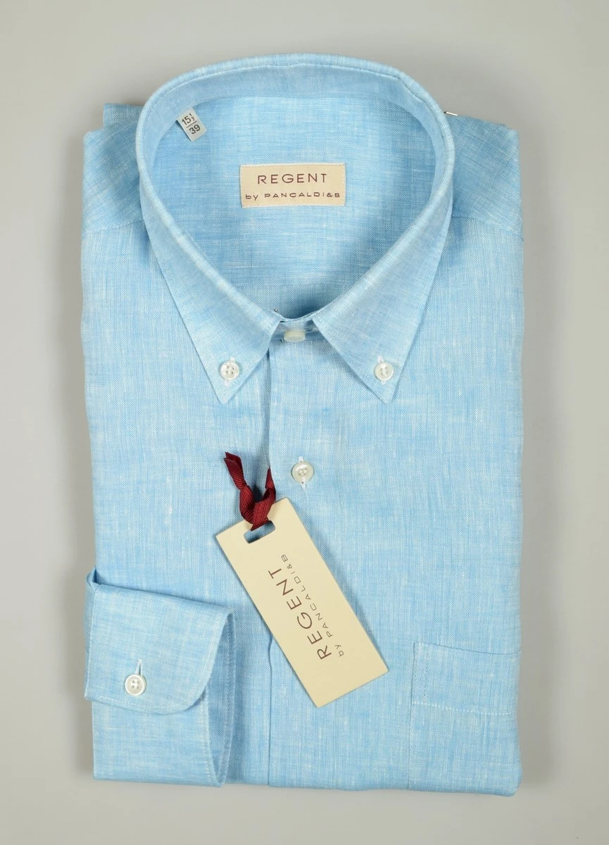 Camicia Verde In Puro Lino Tinta In Capo Ingram Modern Fit Collo Alla Francese