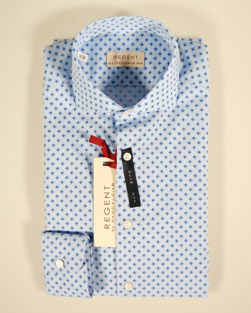 Camicia Button Down Ingram Blu Puro Cotone Disegno Piccolo Stampato